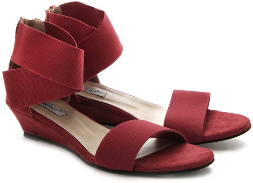 Flaunting a bright and sensuous maroon, these wedges from Bonjour come with a suede exterior along with a unique yet classy design. The elastic strap at the ankle allows a comfortable fit along with the zipper detail at the back. Team them with skinny jeans and a red top or a little black dress.