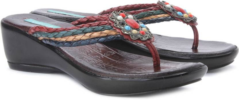 Catwalk brings to you a pair of chunky footwear that will adorn your feet beautifully with its braided narrow straps along with the stone embellishment that adds allure to the colourful body. Flaunting a wedge heel that allows a comfortable stride, these red wedges also come with a padded footbed. Team them with white palazzo pants and a red top.