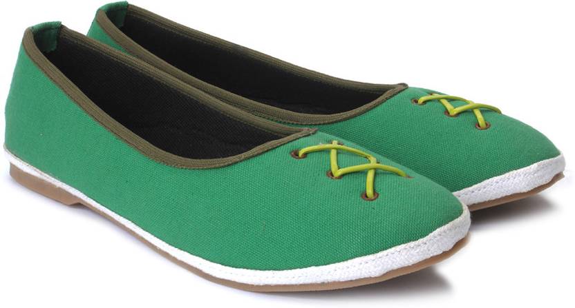 Spread that youthful energy, while donning these vibrant and bold pair of bellies from Funky Town, and let your footwear speak for you. They flaunt a green exterior, which has a criss-cross detailing in the front, giving them that cute flair. Perfect to wear with white capris, a green sleeveless top and a pair of funky socks, these bellies will ensure casual style.