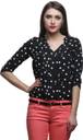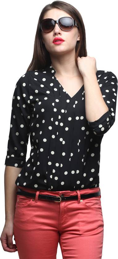 Straddle corporate chic with casual with this sophisticated polka dot blouse from Faballey that is made from whisper-light crepe. Wear this three-fourth sleeved top with coral skinnies and a pair of cat-eye shades for a fun weekend look.