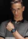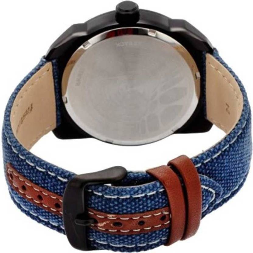 This funky Fastrack watch comes with a mid-sized dial, which is covered by two layers. The strap is also dual layered, with a canvas strap on the outside, and a soft leather base on the inside.