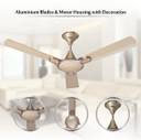 This is a sturdy appliance that is crafted from high-quality aluminium. The overall neat polish, the glossy ring on the motor, and the attractive trims on the blades add to the aesthetics of this ceiling fan, so that it complements your room's interiors.