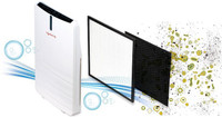 This air purifier applies the theory of negative ionizer generator to produce 8,000,000 ions per cubic centimeter. Its anti-bacterial, HEPA filter clears the air of hydrocarbon and dust particles, pollen, allergy, mold.