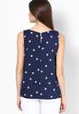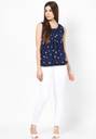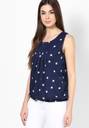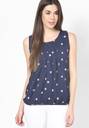 Pair this loose and feminine top from Mayra with light-colored trousers and strappy sandals and walk out of the house in style. The sleeveless pattern adds to the feminine look the top gives you. Designed in blue, the top has an attractive print, making it look very stylish.The top is made of poly crepe and sits well without clinging to your body or looking baggy. The round neck of the top adds to its casual look, making it stylish in a subtle way.