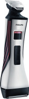 The shaver in metallic lacquer comes with a rubber grip on the handle. The steel blades of the electric trimmer have rounded tips with a comb to prevent skin irritation while and after shaving. The trimmer has a beard trimmer with 12 length settings. There is also a reversible trimmer which is perfect for getting into small spaces like under the nose and around your mouth. It is 100 percent waterproof.