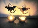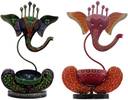 Vandana Collection Ganesh Diya (2) Iron Table Diya Set (Height: 10.5 inch)
