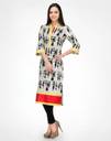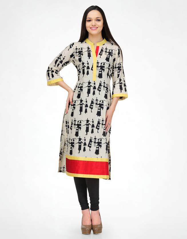 Get a multitude of compliments by wearing this cotton kurta from Shakumbhari. This straight fit kurta features Masaba prints with contrast taping at the neckline, sleeves and hem. Wear it with a pair of black leggings and matching pumps or bellies to complete the chic look.
