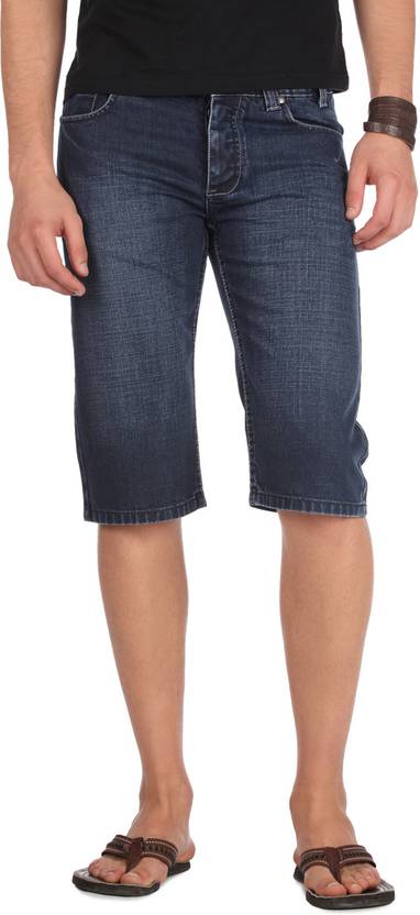 Unwind on weekends in style by sporting these comfy three fourths from USI. Made from 100 per cent cotton, this pair of three fourths with a buttoned fly gives you great comfort. The logo metal tab on the back pocket and the washed effect make this pair of solid blue three fourths look airy and trendy.