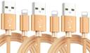 eller santé Lightning Cable 2.4 A 1 m 2.4A Lightning USB Cable Sync and Charging Nylon Braided Data Cable (Pack of 3) (Compatible with Mobile, Tablet, Gold, Pack of: 3)