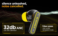 Nu Republic Epic ANC TWS Earbud with 64hr Playtime, ANC + ENC Quad Mics & XBass® Bluetooth (Black/Yellow, True Wireless)