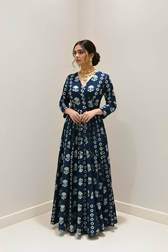 The gown features full sleeves, providing coverage and adding a touch of sophistication to your look. Full sleeves are practical for cooler weather or indoor settings where a bit of extra warmth is appreciated. They offer versatility, allowing you to wear the gown across different seasons and occasions. The length and style of the sleeves enhance the gown's overall elegance, making it suitable for formal events and special occasions alike.