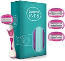 Dorco EVE 6 Non-Slip handle Open Flow Cartridge - 1 Razor + 4 Bendable Cartridges (Pack of 5)