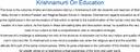 The book is a reflection of J. Krishnamurti's in-depth discussions about education with faculty and students at Rajghat Besant School and Rishi Valley School. According to Krishnamurti, education is essential to changing people's minds and creating new cultures. He questions the fundamentals of the cultural standards and promotes an all-encompassing educational strategy that combines intelligence with spiritual and scientific viewpoints. Krishnamurti envisions a new consciousness where the religious and scientific elements combine, developing a better understanding of both self and society.