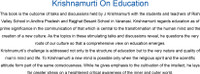 The author spent more than sixty years being a conversationalist and companion to audiences throughout the globe. His lessons, which are not restricted by ideologies or textbooks, speak directly to seekers who are struggling with both human problems and current world issues. By connecting spiritual knowledge with a practical grasp of the human condition, Krishnamurti's method makes deep ideas accessible to everyone really seeking clarity among life's difficulties.