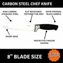 Femora 1 Pc Carbon Steel Knife Carbon Steel High Grade Chef Knife 8 inch blade