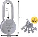 Foora Round 65 LS with 5 Keys, Extra Long Shackle, Double Locking -Size 65 mm Padlock (Silver)