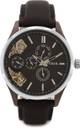 The multicolored dial of this wristwatch shows time in the analog format. Time is displayed in the 24 hours format. This watch also comes equipped with the tourbillon feature that improves accuracy and also gives it a novelty item look.