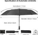 Frackson 12 Rib Umbrella Automatic Open with Wind Vent,big size for rain,Windproof Umbrella (Black)