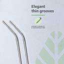 The set includes four stainless steel straws, consisting of two straight and two bent options. Stainless steel construction ensures durability and longevity, making these straws suitable for repeated use. Both the straight and bent designs offer versatility, accommodating different drinking preferences and vessel sizes. Stainless steel straws are also resistant to rust and corrosion, ensuring they maintain their quality appearance over time.