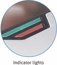 This appliance has a red light that glows when the power is on and a green light that glows when it is ready to use.