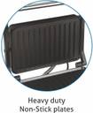 This grill features plates with a non-stick coating, so your sandwiches do not stick to the surface. Also, the coating makes it an easy-to-clean appliance.