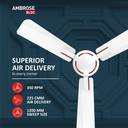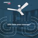 The fan is designed to provide 10% extra area coverage compared to standard models. This extended reach ensures more effective cooling across larger spaces, helping to maintain a consistently comfortable environment in every part of the room.