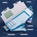 JOY MAKER SPACEMAN ASTRONAUT THEME MULTI LAYER MULTIPLE BUTTONS PLASTIC COMPASS BOX Art Metal Pencil Box (Set of 1, Multicolor)