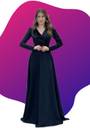Featuring an A-line cut, this gown offers a flattering and timeless silhouette that gracefully skims the body. Its V-neckline adds a structured touch to the bodice, enhancing the overall look while maintaining a graceful appeal. However, its long puffed sleeves introduce subtle volume, creating a balanced silhouette that complements various body types. With its full-length structure, this gown ensures an elegant drape, making it a stylish choice for formal occasions, evening events, or various celebrations.