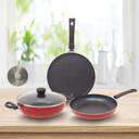 Kreme Basics 3pcs Induction Bottom Set Induction Bottom Non-Stick Coated Cookware Set (Aluminium, 3 - Piece)