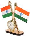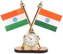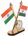 Kromtec Double-Sided India Flag With Elegant Quartz Clock for Office Table, Study Table Double Sided Wind Car Dashboard Flag (Plastic, Pack of 1)