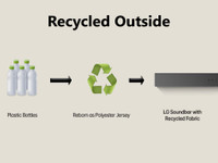 All LG Soundbars are thoughtfully designed with careful consideration to ensure a high percentage of reclaimed materials. The Global Recycled Standard certifies that the polyester jersey fabric is made from repurposed plastic bottles.