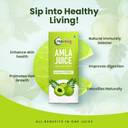 Enriched with potent antioxidant properties and vitamin C, this amla juice is a boon for hair care and nourishment. By strengthening hair follicles, promoting effective hair growth, and reducing hair fall, it paves the way to lustrous and healthy locks. Moreover, thanks to its rich vitamin C content, this juice serves as a natural immune booster, fortifying your body's defences and shielding you from various ailments. Besides, courtesy of its unique composition, this amla juice offers a plethora of benefits for your skin. It can effectively combat marks, pigmentation, and blemishes, aiding in the oxidation of melanin and promoting a radiant complexion. Additionally, it works wonders in closing skin pores and tackling white spots on nails, leaving you with smooth and flawless skin. And, it benefits your eyesight and digestive well-being, allowing you to lead a healthy lifestyle and enjoy the numerous advantages of this pure and organic juice.