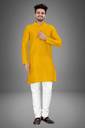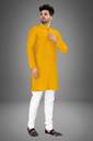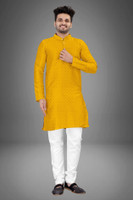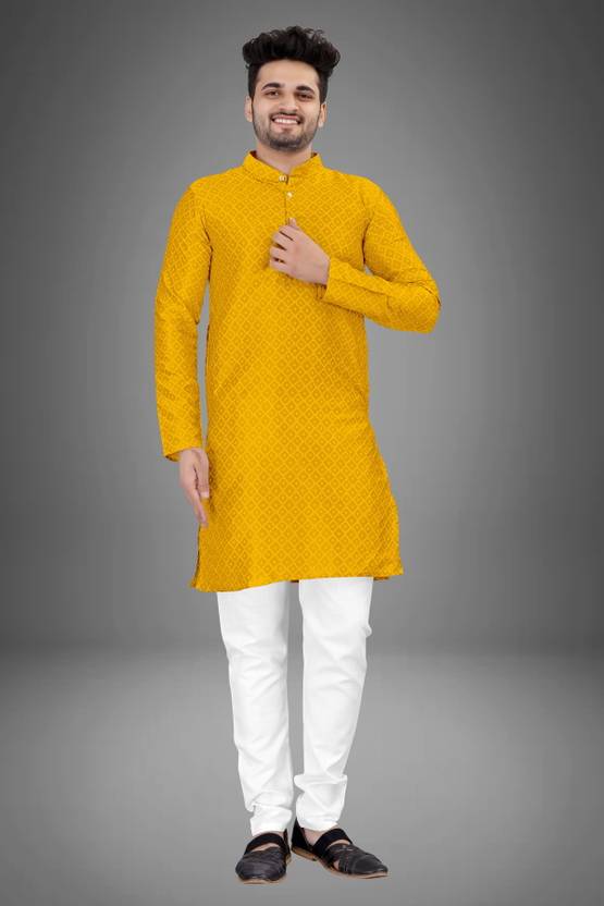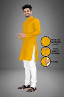 Featuring a high-quality fabric composition, this men's kurta and pyjama set is designed for lasting wear. The kurta flaunts sturdy buttons which remain secure over time, while the fabric maintains a neat appearance even after multiple wears. Furthermore, with the inclusion of a functional pocket, the kurta ensures added convenience, allowing space for small essentials without compromising the overall look.