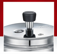 This pressure cooker comes with a Gasket Release System (GRS) and Gasket release Vent system (GRVS) for enhanced safety. In case there is any blockage of the vent tube, the gasket bulges to release steam through the hole which is at the top.