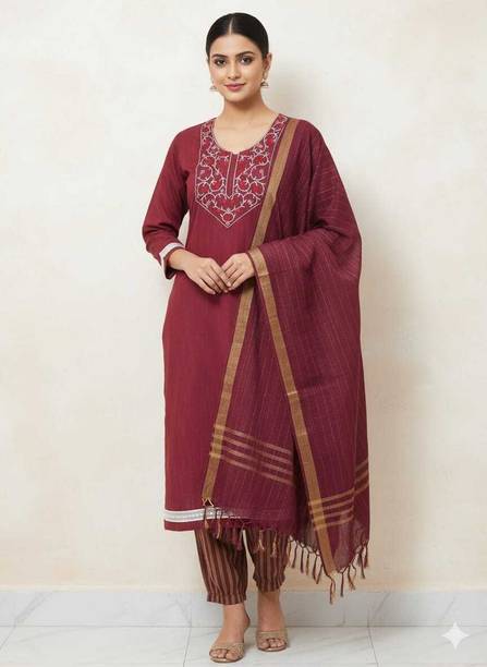 Are you looking for classic and beautiful apparel to flaunt at events? Then check out the classic kurti with pant set. It offers a chic look, with a three-piece set that generally consists of a traditional kurti, a pair of pants, and a dupatta. You can wear these to marriage ceremonies, college events, offices, religious festivals, family gatherings, and more. You can also wear it inside your home as loungewear or as casual attire to nearby places. It is an all-year look that can make an individual stand out with their unique style preference. Check out the latest kurti and pants in fantastic combo sets of angarkha and dhoti pants, ethnic jacket-kurta and palazzo set, salwar and dupatta, top and dhoti pants set, traditional gowns, ethnic dresses sets, and more. These are available in soft and cosy poly satin, art silk, cotton-rayon blend, georgette chiffon blend, net, muslin, and many other popular fabrics. You can wear these with jhumkas, necklaces, bangles, jewel-encrusted chokers, bindis, etc. Find your favourite kurti and pants set in vibrant shades of dark green, cream, silver, purple, blue, maroon, etc. Browse through brands like PINK WISHES EXPORT, Jaipur Kurti, Aurelia, Stylum, aadicraft, etc. The information you are reading has been last updated on 30-Oct-25.