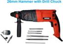 Sauran 1200w Hammer Drill 26mm With Reverse Forward Function, Drill Chuck Set, 3pc Hammer Drill and 2pc Chisel Bit 1200w Hammer Drill 26mm With Reverse Forward Function, Drill Chuck Set, 3pc Hammer Drill and 2pc Chisel Bit Rotary Hammer Drill (26 mm Chuck Size, 800 W)