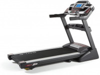 This treadmill has a sound system and is compatible with MP3 players, iPods, etc. It comes with chest straps and cooling fans for added comfort.