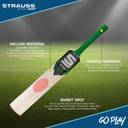 Strauss Slogger | Suitable Only for Tennis Ball | Size: Short Handle | Kashmir Willow Cricket Bat For 15+ Yrs (1050-1200 g)