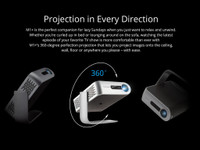 For a 360° setup, this projector comes with a smart stand that lets you place this device in various positions and angles. It also works as a lens cover that shuts the projector automatically when closed and turns it on automatically when opened.
