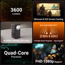 ZEBRONICS ZEB-JLP 4 (Zeb-Pixa Play 74B (Grey)) (3600 lm / Wireless / Remote Controller) Portable Projector (Grey)
