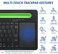 This keyboard's multitouch trackpad automatically identifies every device and maps the keys to offer a similar layout along with shortcuts.