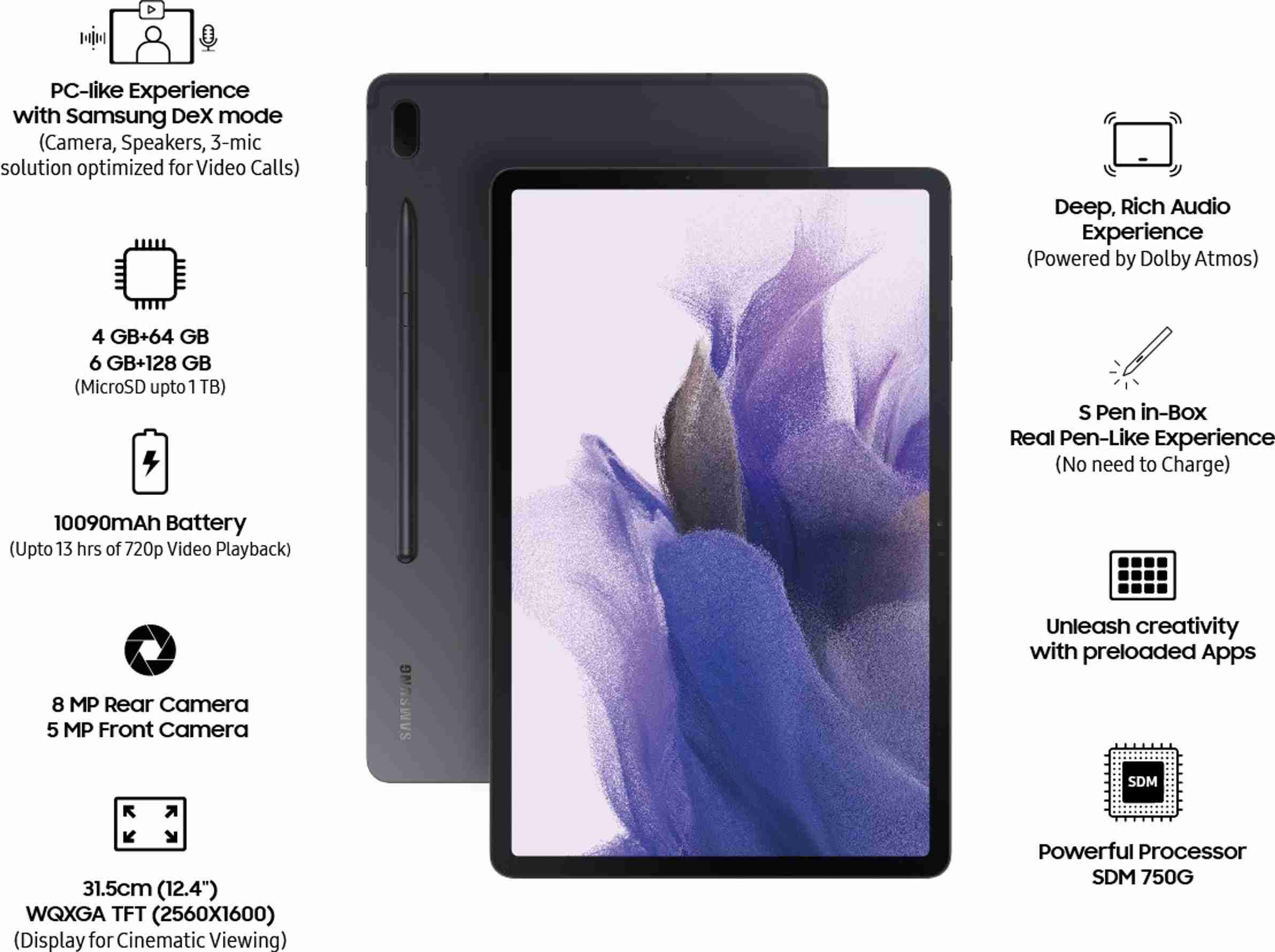 Galaxy Tab S7 FE With Stylus 4 GB RAM 64 GB ROM 12.4 inches with 4G Qualcomm Snapdragon 700 Series Tablet (Black)