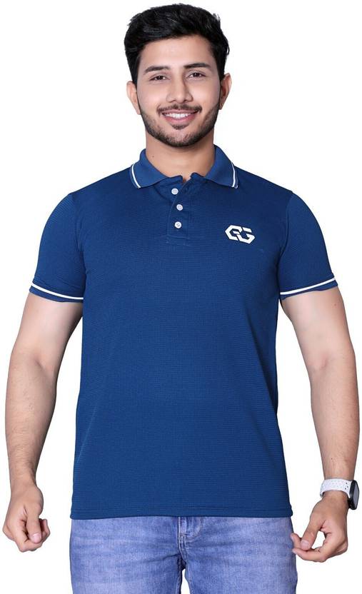 Gorilla Guy Solid Men Henley Neck Blue T-Shirt