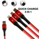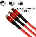 3 in 1 multi charging cable have 3 different charging connectors, that means 1 cable can meet your daily devices charging needs when you are going a long trip , in the office ,in the car or at home, which makes your life more convenient, smart, and colorful, you deserve to own one. Its Premium housing & Aluminum Connectors extend its service life to a large extent and makes it withstand 4000+ insert and extract test. It also supports fast charging with a maximum charging speed up to 3A, charge faster than most standard cables.