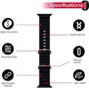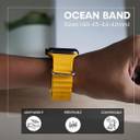Ocean Bands are specially designed and compatible with Apple Watch Ultra 2, Ultra and Series 9 8 7 6 5 4 3 2 1 SE2 & SE 49mm 45mm 44mm 42mm. (Only Strap for iWatch, (No watch is included). Ocean Band is molded in a high performance elastomer with a tubular geometry. There is an adjustable loop and metal buckle for quick and easy adjustment. its made of premium Fluoroelastomer material, allowing it to stretch for lightweight and flexible The corrosion-resistant titanium Titanium Buckle and adjustable loop for a hyper-secure fit, even during high-speed water sports
