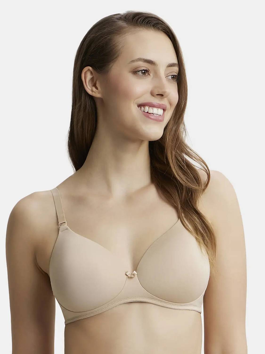 Jockey 1819 Wirefree Padded Microfiber Elastane Stretch Full Coverage T-Shirt Bra with Magic Under Cup - Light Skin. Elegantly crafted from the finest materials for a luxurious feel,Its the little details that make the Soft Wonder Collection a cut above the rest ? the only choice for the woman who appreciates the finer things in life. Soft Touch Microfiber Elastane Stretch Fabric ,Fabric Composition : Micro Nylon and Elastane ,Full Coverage Bra ,Wirefree and Padded ,Magic Under Cup for Extra Support ,Multiway Styling ,Soft and Smooth Adjustable Straps ,Label Free for All Day Comfort ,Based on the Size Band Of the Bra, the Number Of Hook and Eye Varies for Better Support. Hand wash, cold, Do not bleach, Do not wring, Drip dry in shade, Do not iron, Do not iron, Do not dry clean, Wash with like colours.