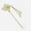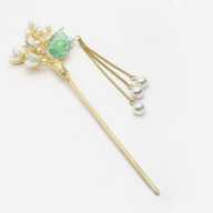 Ashkash 1pcs Retro Leaves Pearl Hair Stick Ancient Style Chinese Hair Chopsticks Hairpin Bun Stick (Gold)