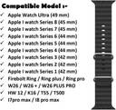 watch series 8 (45 mm), watch series 7 (45 mm), watch series 6 (44 mm), watch series 5 (44 mm), watch series 4 (44 mm), watch series 3 (42 mm), watch series 2 (42 mm), watch series 1 (42 mm), RING / RING PRO / RING PLUS, VISIONARY, K16, A2 LOGO, MC72, FK 98, W26, T55, T500, I7 PRO MAX, I8 PRO MAX High-quality Material : Superior soft silicone, smooth surface, sports appearance, comfortable and durable. Easy to Install: Equipped 2 lugs on both sides can be precisely locked on the Watch interface. Simple to install and disassemble by one key. Warm Note: Please wait a few seconds after you install the watch strap on the watch, and insure that it won’t move forwards or backwards after a successful installation.for iWatch Series SE 8 7 6 5 4 3 2 1 T55/T550 W26 Alpine Loop Band Compatible with Apple Watch, a premium quality strap designed for both men and women who enjoy an active lifestyle. Whether you're a fitness enthusiast or a water sports lover, this strap is perfect for you. It is compatible with Apple Watch Series 8 7 6 5 4 3 2 1 SE, as well as other popular models like FIREBOLT Ring/ Ring Plus/ Ring Pro/ Visionary, PEBBLE Frost, Cosmos Engage, Cosmos Grande, W26, W26 PLUS, W26 PLUS PRO, T55, T55+, T500, T500+, T800, HW12, HW13, HW16, K16, K17, A2, i7 PRO MAX, i8 PRO MAX, Watch Ultra, Series 6, and many more. Designed for water sports enthusiasts, this band is made of high-performance elastomer and features a tubular geometry that stretches to fit even over a wetsuit.