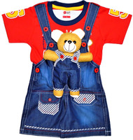 Wise Guys Baby Boys & Baby Girls Party(Festive) T-shirt Dungaree (Red)