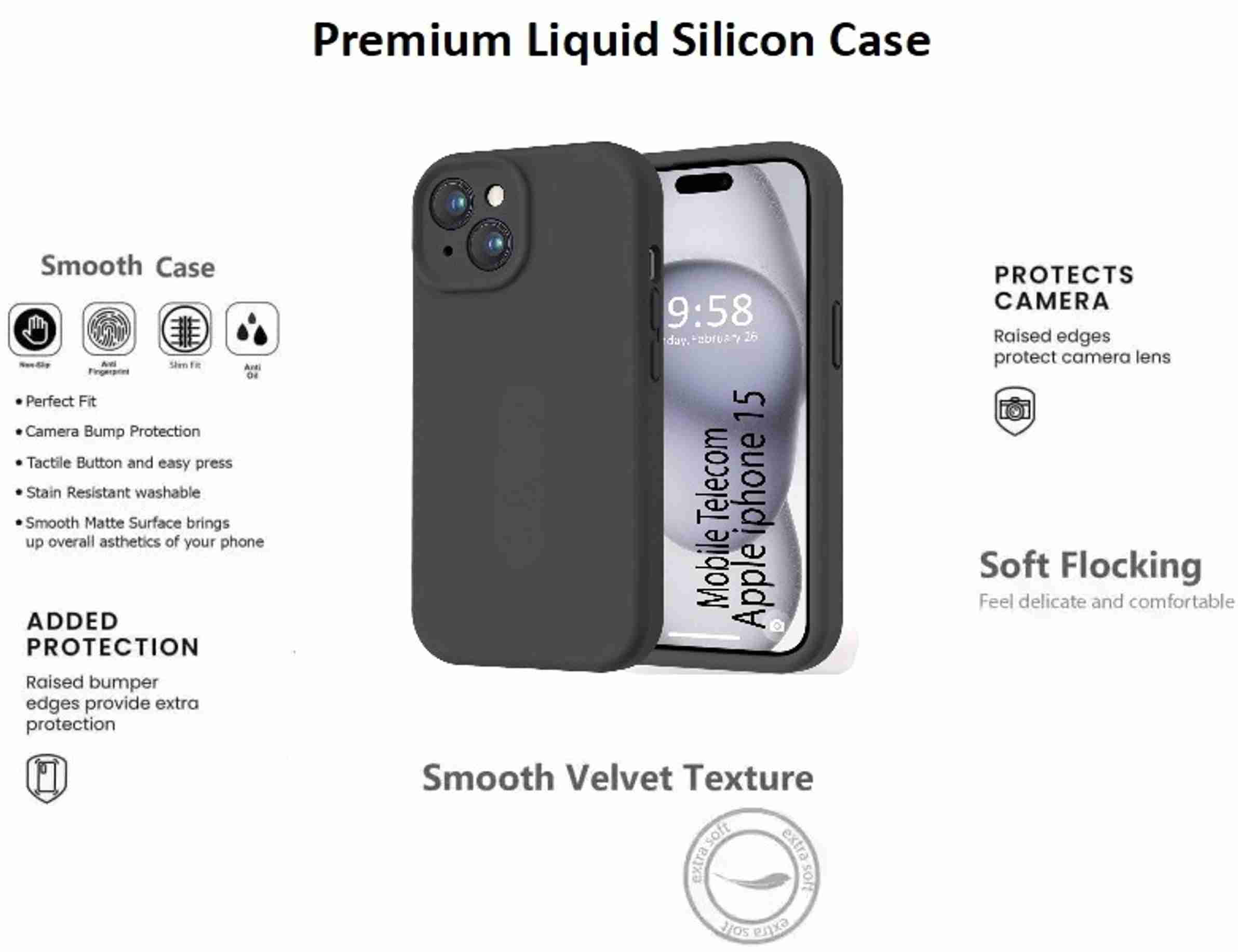 Back Cover for Apple iphone 15, Premium Silicon Candy Case (Black, Silicon, Pack of: 1)